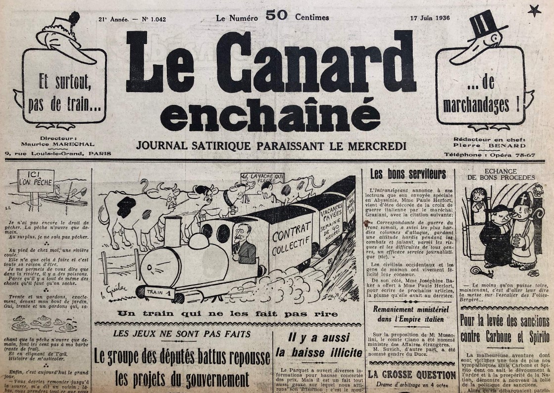 Tous nos journaux du canard enchaîné de 1936 sont des documents historiques qui proviennent de nos propres archives de presse ancienne. Ils ont été récupérés auprès d'institutions telles que les bibliothèques, musées ou collectionneurs privés. Aucune reproduction ni photocopie numérique . S'agissant d'un titre de presse hebdomadaire paraissant le mercredi, vous recevrez donc le journal le canard enchaîné édité la semaine de la date de naissance demandée en 1936.