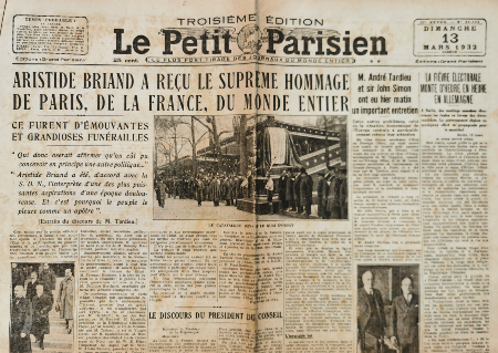 De 1922 et jusqu'en 1944, la presse écrite en France était la source d'informations la plus importante. Rien que sur le plan national, une trentaine de journaux quotidiens étaient publiés. Nous expédions donc toujours des grands titres de presse connus de l'époque et qui ont pour la plupart disparu après 1945. Les journaux prélevès par nos archivistes sont généralement les suivants : Le Temps ( ancetre du journal le monde ), le petit journal, le petit parisien, l'aurore, le matin de paris, l'intransigeant, l'ordre, l'éclair du midi....